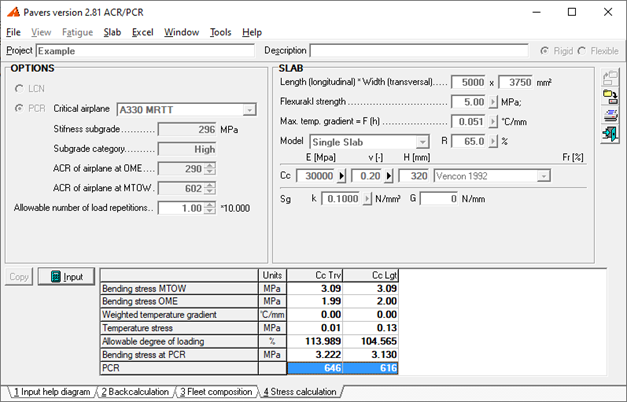 The Pavers program has all capabilities to assist you in reporting realistic and reproducible PCR-numbers that are consistent with the true pavement life, material strengths and fleet mix usage.