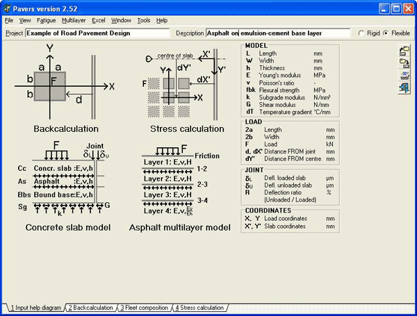 The structural thickness design of a flexible pavement is based on a calculating strains and stresses at critical points in the pavement structure. Pavers® allows a pavement engineer to define or use calibrated performance models and failure criteria for all pavement layers and subgrade in his pavement design projects. By adjusting pavement layer thicknesses until the allowable number of passes matches the forecasted number, a structural pavement design is made.